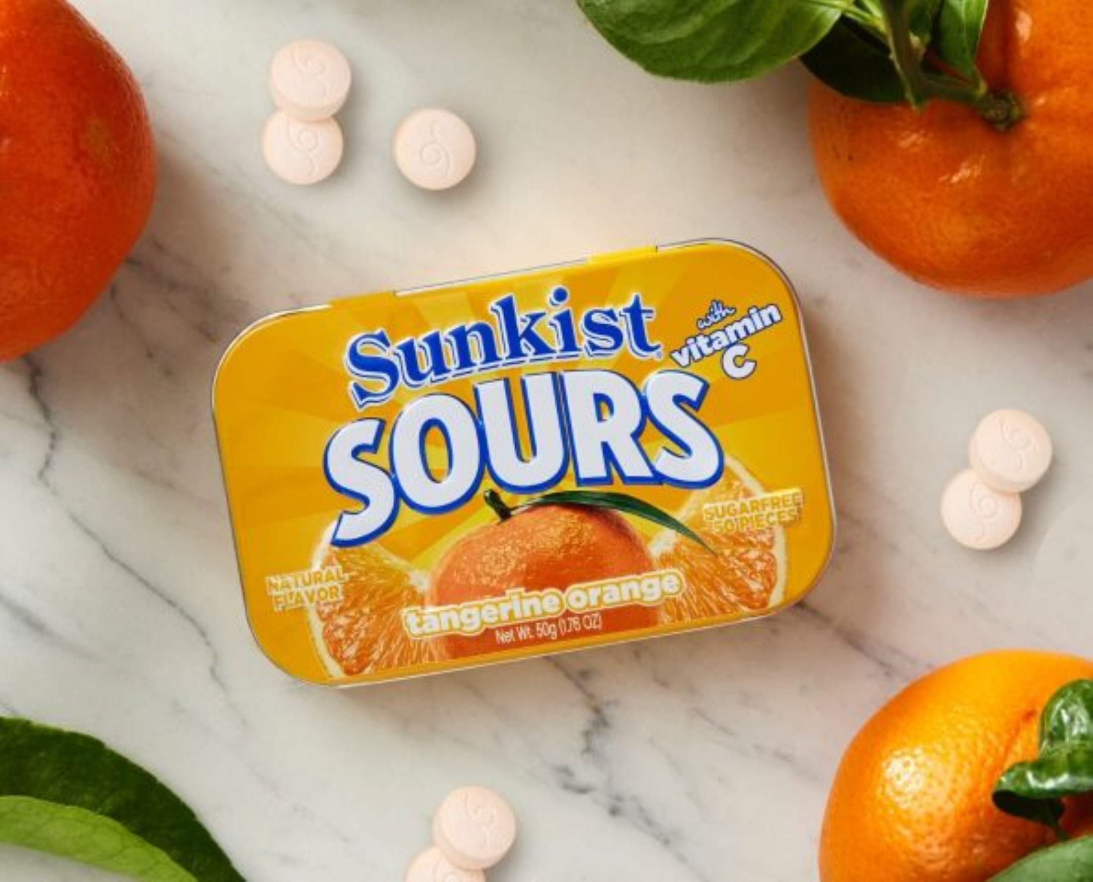 Tangerine Orange with Vitamin C Sugar free 50 Pieces in a Tin